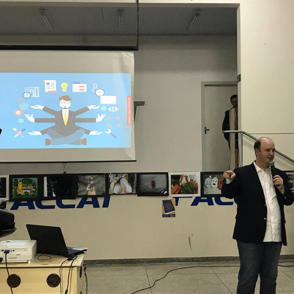 Palestrante: Publicitário Fábio de Barros, que falou sobre sua experiência profissional a frente de empresas como Chiquinho Sorvetes, Água Doce, Ratinho e outros.