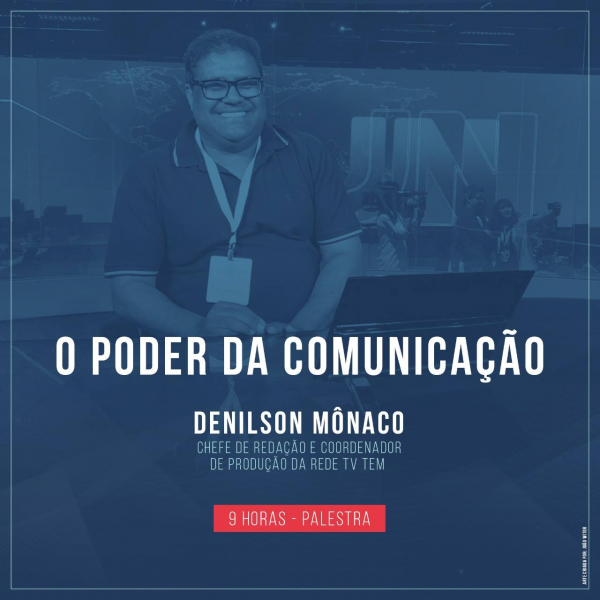 A primeira palestra tem como tema o “Poder da Comunicação” e será ministrada às 9h, por Denilson Mônaco, chefe de redação e coordenador de produção da Rede TV TEM.
