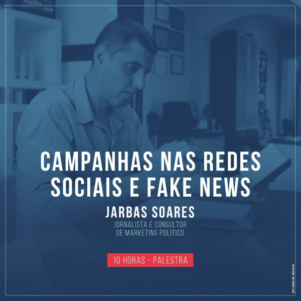 A segunda palestra será às 10h, com o tema “Campanhas nas Redes Sociais e Fake News”, ministrada pelo jornalista e consultor de marketing político Jarbas Soares.