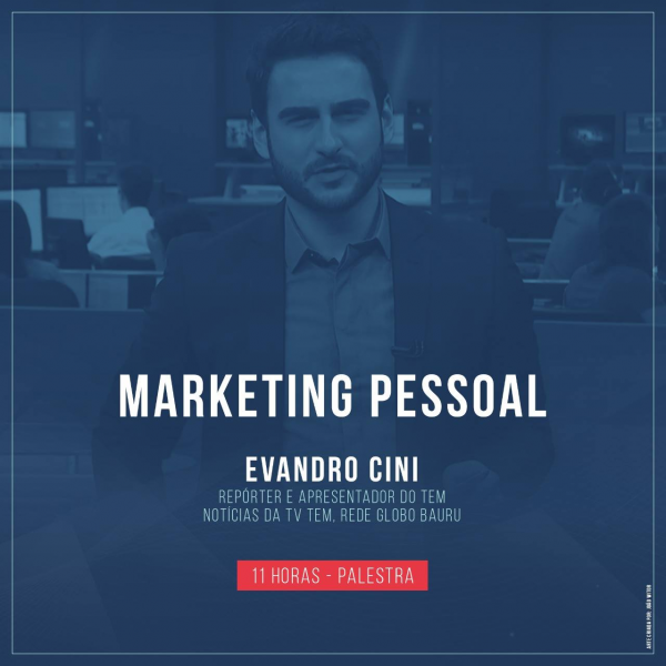 Encerrando o 1º Fórum de Comunicação e Marketing, Evandro Cini, repórter e apresentador do TEM Notícias da TV TEM, Rede Globo Bauru, abordará o tema “Marketing Pessoal”.